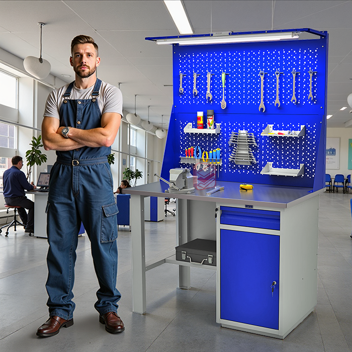 Верстак может быть дополнительно оснащен аксессуарами для хранения инструментов.