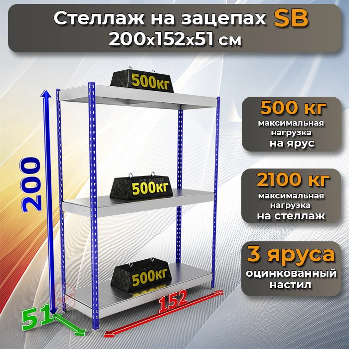 Стеллаж металлический на зацепах SB 200х152х51 с оцинкованными полками – надёжность и прочность для вашего хранения