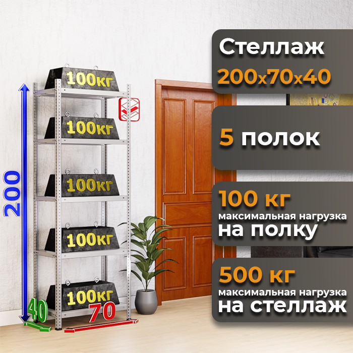 Стеллаж сборный MS Standart 200х70х40 с пятью полками — это стильное, прочное и функциональное решение, которое станет незаменимым помощником в поддержании порядка в гараже и в доме.